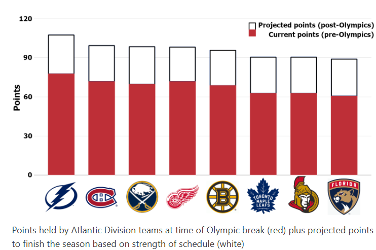 Given strength of schedule and stuff, they came up with guesstimate for Atlantic finish. What awaits the Atlantic Division teams after the Olympics