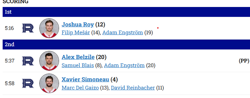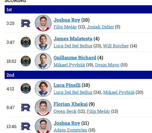 3-3 near end of 2nd period Xhekaj 1g 4 shots 4PIMs Engstrom 1a 1 shot Fowler 15 shots Roy 2g 3 shots Mesar 2a