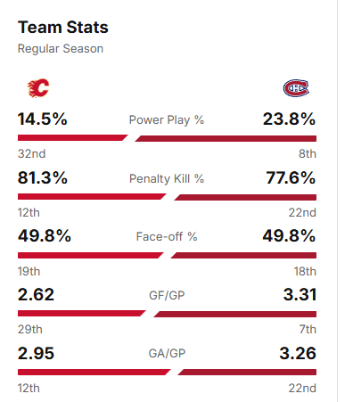 1st Game after a road trip, will that play out as often seems to? 23-19 Habs vs 18-24 Flames Habs 6-2-2 Flames 6-4-0
